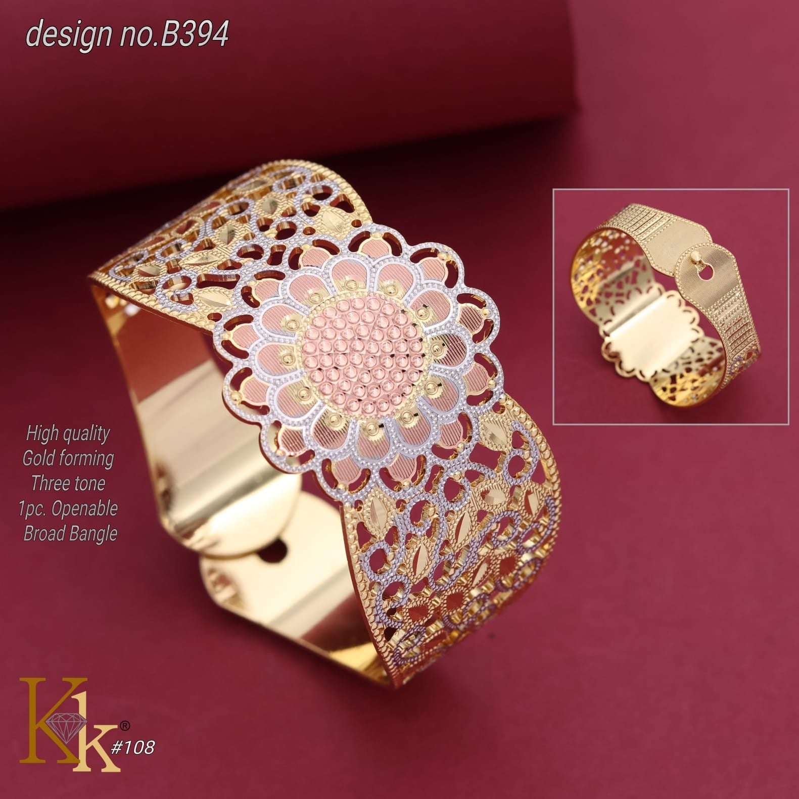 High quality high forming three tone 1pc broad bracelet.